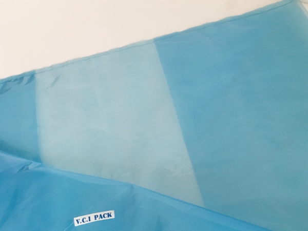 VCI氣相防銹膜(防銹袋)是將高分子聚乙烯樹脂(LDPE)與功能VCI樹脂配比混合,采用現(xiàn)代薄膜共擠技術(shù)生產(chǎn)的新一代復合防銹薄膜。具有良好的氣化防銹性能、阻隔防潮、使用方便、透明直觀等特點;當用塑料袋包裹金屬產(chǎn)品時,氣相緩蝕劑在封閉空間內(nèi)氣化并凝聚在所有金屬表面上形成氣相保護層,從而防止金屬產(chǎn)品銹蝕。符合GB-T19532-2004防銹性能要求。